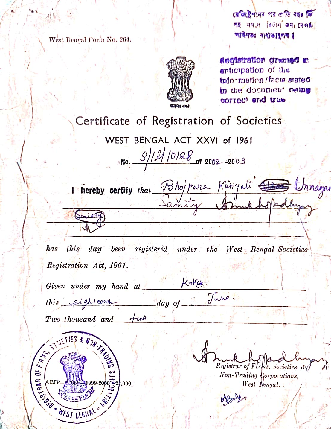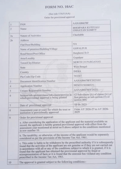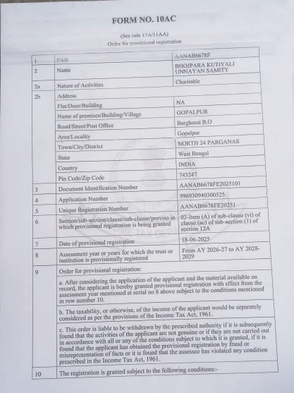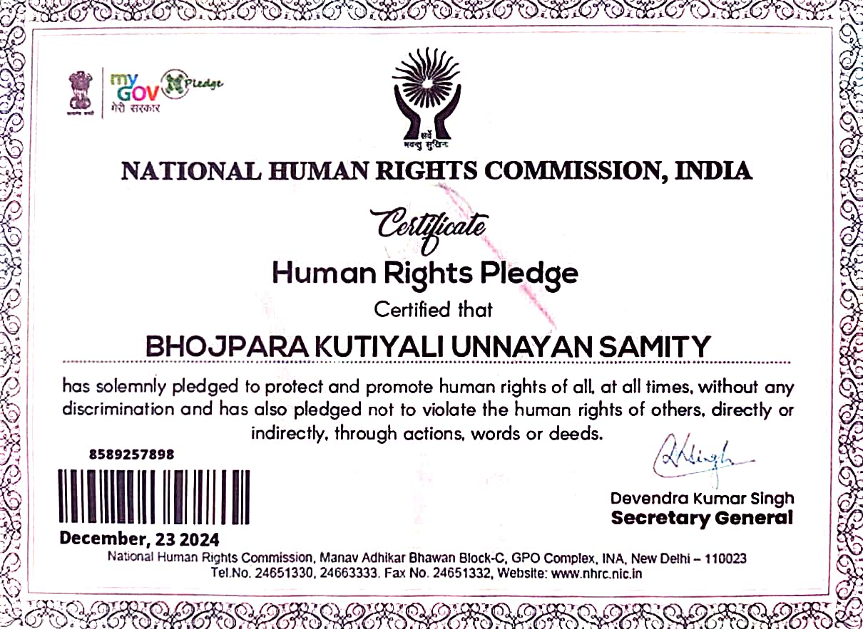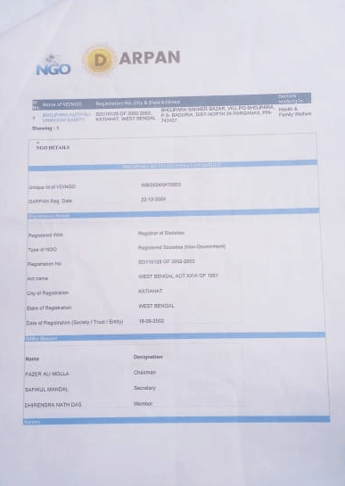 Document Gallery Bhojpara Kutiyali Unnayan Samity NGO Darpan Humanrights Certificates 10 AC DM Registration Pan Card CSR 1 80 G Registration Certificate